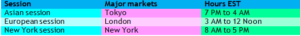 - Sydney and Tokyo between 7:00PM – 2 AM EST