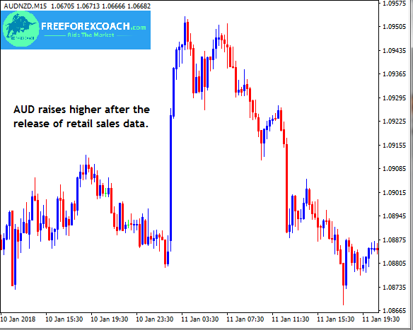 The example below shows what happened in the market after the release of retail sales in Australia. It was more than expected.