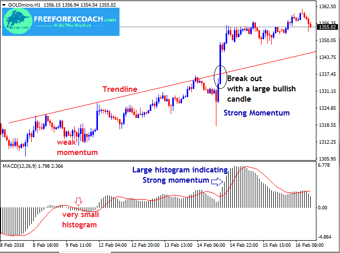 Examples on how measure strength of a breakout in forex using MACD