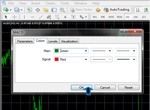 When you click on the indicator, let’s say Moving Average Convergence Divergence (MACD), your chart will appear as the figure below.