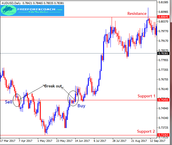 On the other hand a break out on support gives a sell signal while a break out on resistance gives a buy signal.
