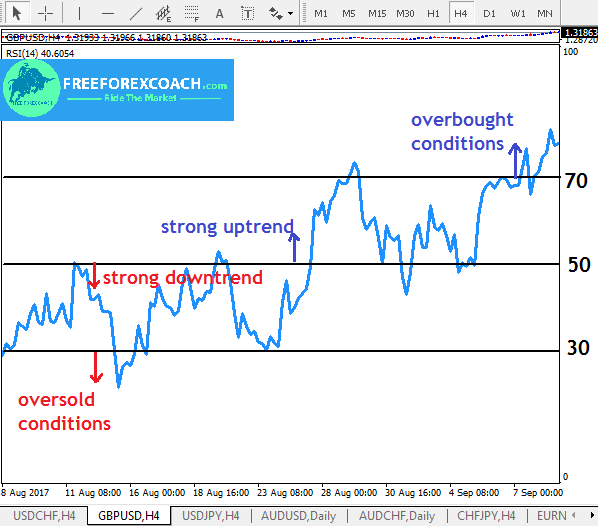RSI scale ranges from 0 to 100% and shows overbought and over sold conditions.