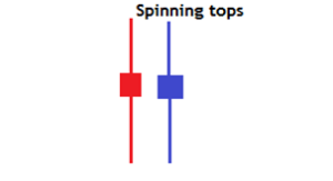 A spinning top shows the points of indecision between the buyers and the sellers.