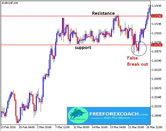 This happens when price breaks out the defined levels of support and resistance for a short time and does not continue but moves back to the opposite direction.