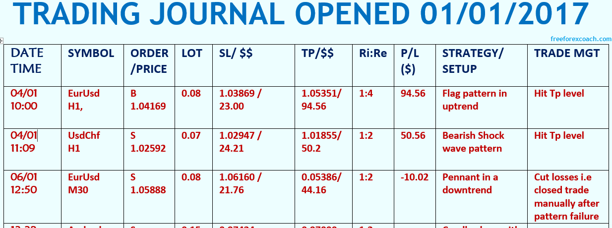 As your trading journal progresses over a series of trades, you will start to see the significance of it more clearly. This will give you a picture of how you are doing and the system.