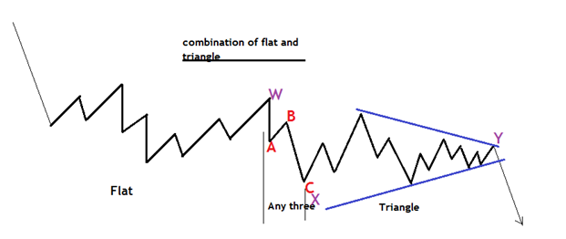 Wave W & Y subdivisions are either zigzag, flat or smaller degree double three or triple three. X can be any wave