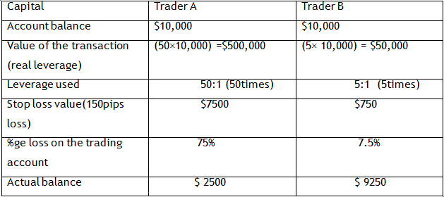 Trader A with a $10,000 trading account, takes a position of $500,000, leverage 50:1.