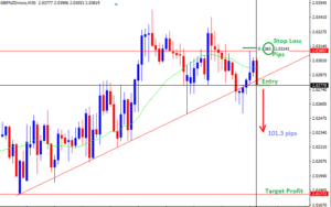 Risk to reward ratio = (Stop loss in pips/ target profit in pips)