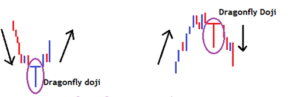 After a long uptrend, or at the resistance level, the appearance of a red dragonfly shakes buyers. It shows that the buyers are getting more weak and there is still existence of the sellers in the market.