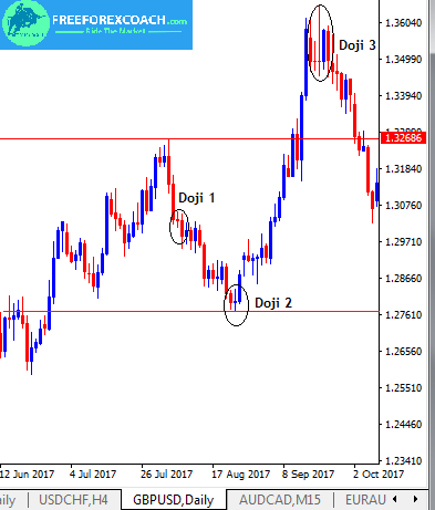 From the chart you can now see that when a doji appears especially on the levels of a support and resistance it gives a strong signal for reversal.
