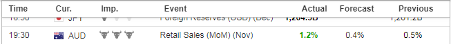 The example below shows what happened in the market after the release of retail sales in Australia. It was more than expected.