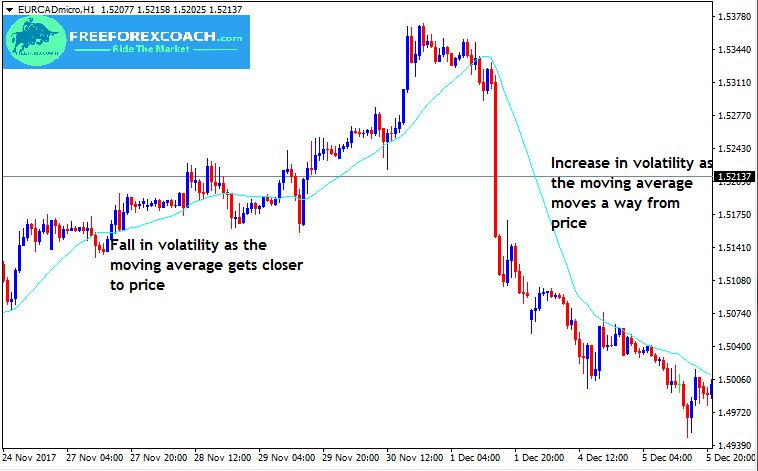 From the chart above, as the moving average moves a way from price, it indicates high volatility in the market.