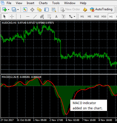When you click on the indicator, let’s say Moving Average Convergence Divergence (MACD), your chart will appear as the figure below.