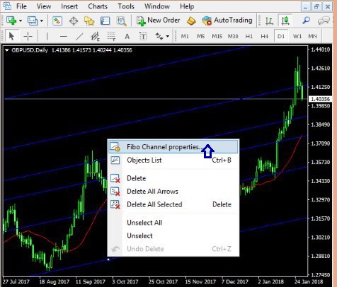 This is how our chart looks like. We just changed the color of the fibo channel from blue to red color.