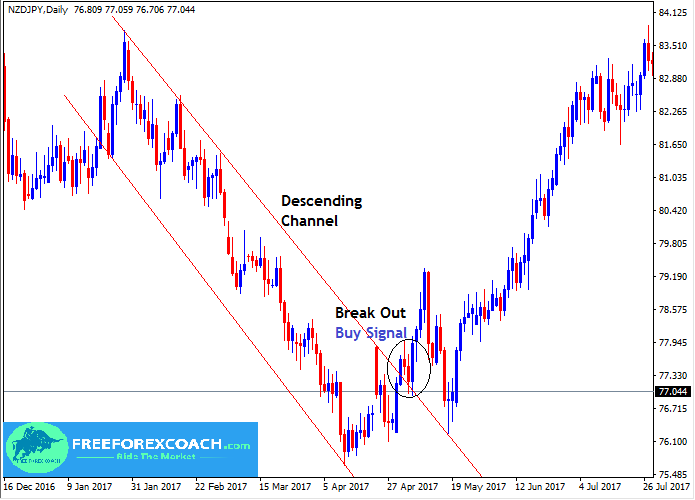 A breakout on the upper line of the channel/resistance gives a signal for a buy while on the lower level/support gives a signal for a sell.