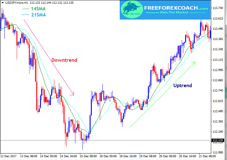 Below is a USDJPY, Hourly market chart with Moving Averages (21 SMA &14 SMA)