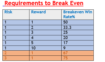 So, the bigger the risk reward ratio, the fewer the wins you need.