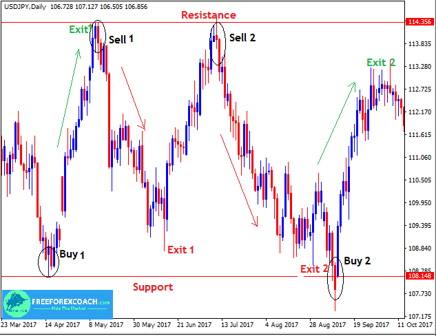 The above example shows how price ranges between the levels of support and resistance and how it give you potential trade signals.