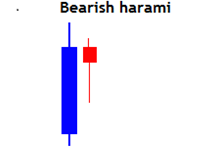 The bearish harami forms at the end of an uptrend with a large bullish candlestick and a small candlestick.