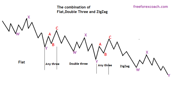 Wave W, Y & Z subdivisions can appear as zigzag, flat, double three of smaller degree or triple three of smaller degree. Wave X can be any corrective wave.